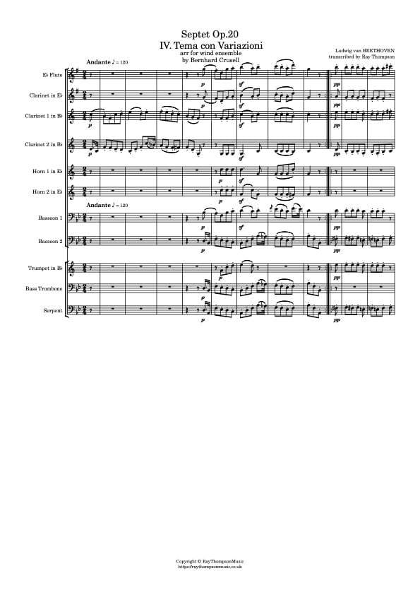 Septet in Eb major Op.20 Mvt.IV. Tema con variazioni (arr. Bernhard Crusell) - wind ensemble