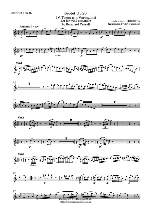 Beethoven: Septet in Eb major Op.20 (arr. Bernhard Crusell) Mvt.IV Tema con variazioni - wind ensemble