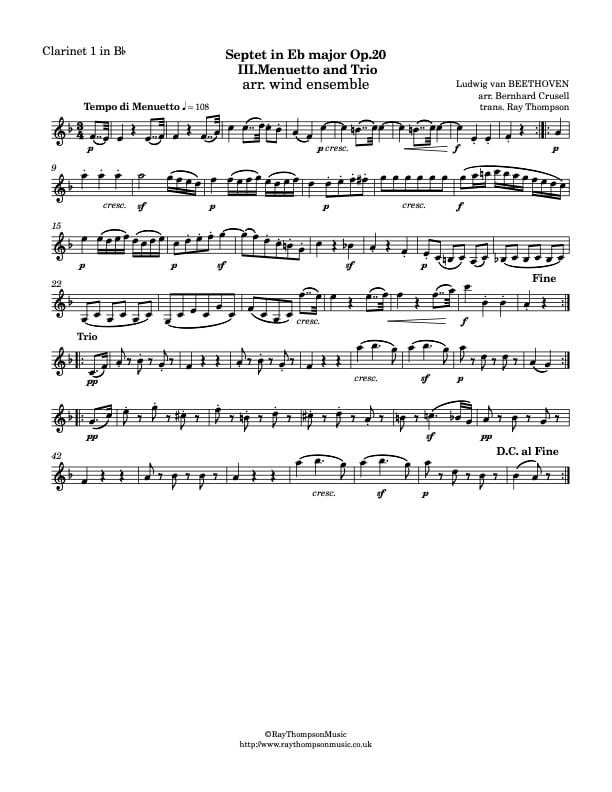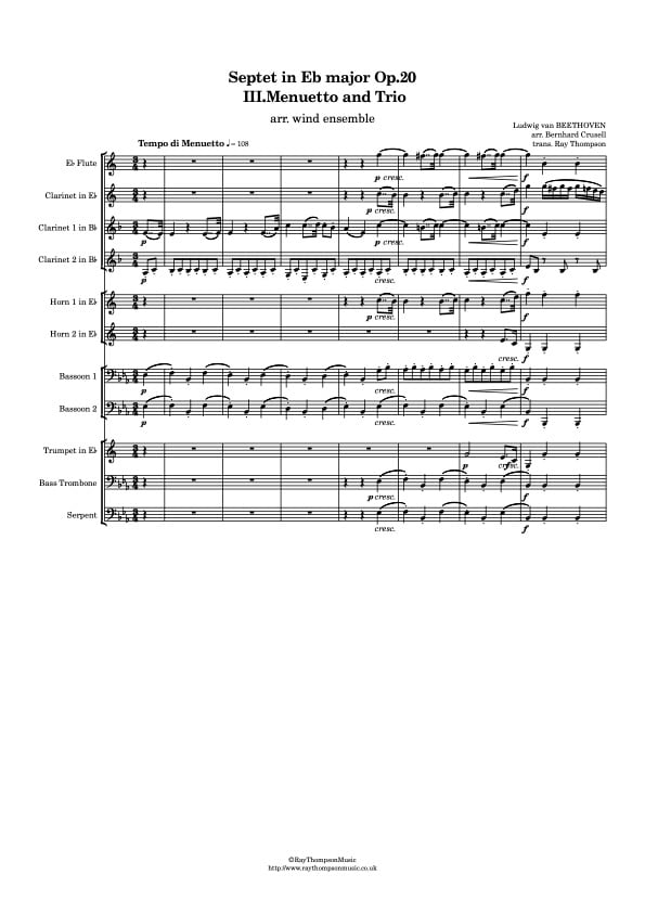 Beethoven: Septet in Eb major Op.20 (arr. Bernhard Crusell) Mvt.III Menuetto and Trio - wind ensemble