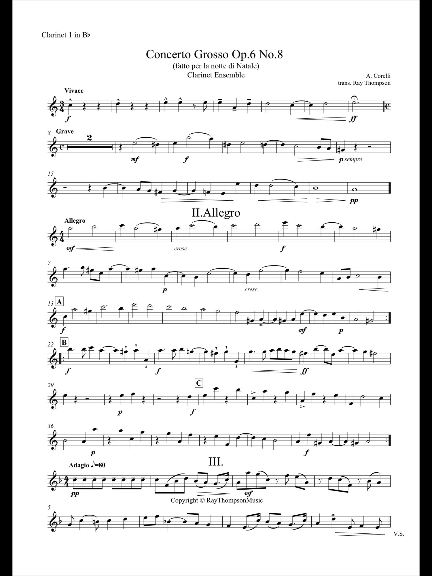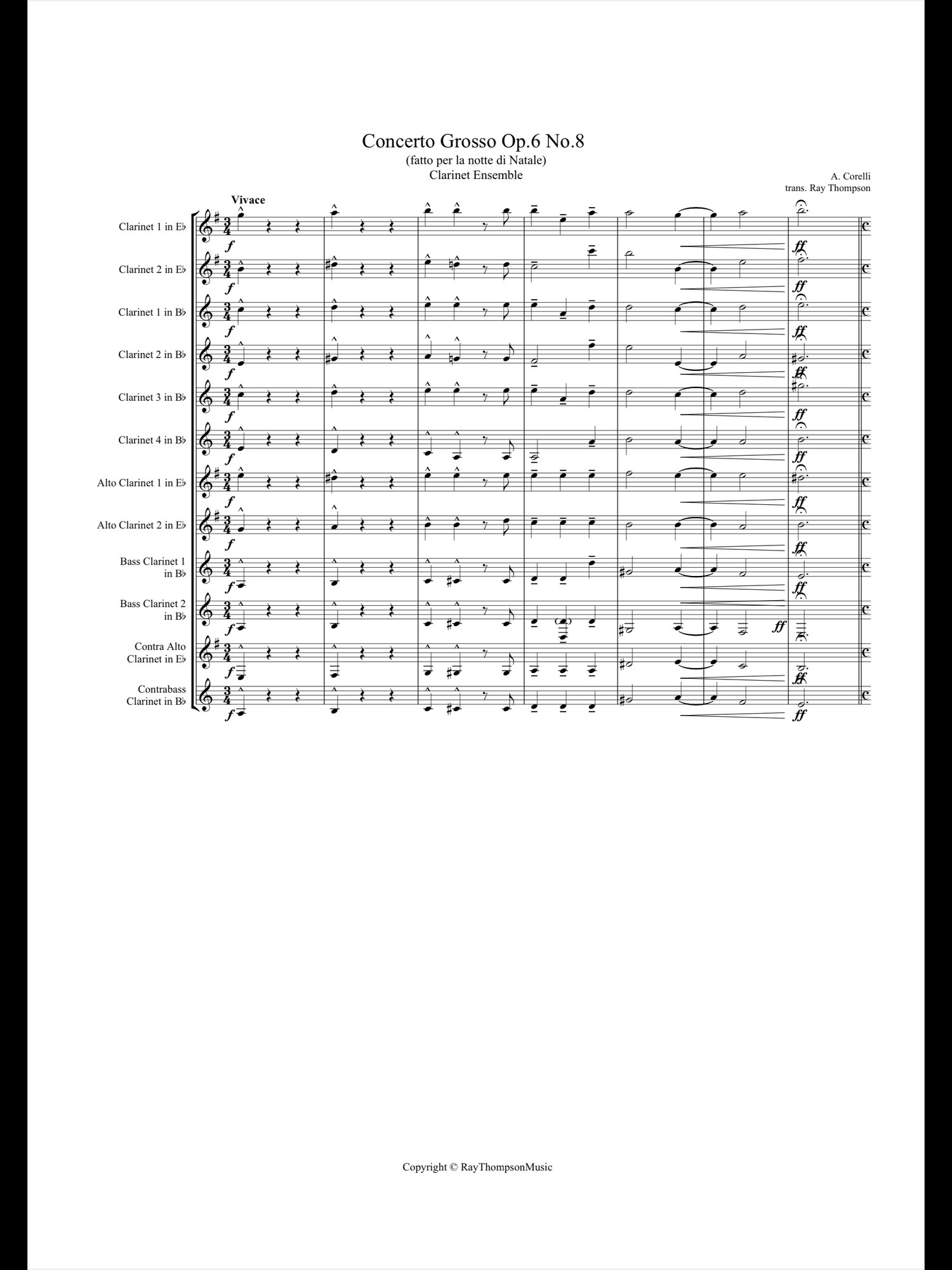 Corelli: Concerto Grosso Op.6 No.8 (Christmas Concerto) (Complete) - clarinet ensemble