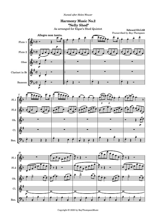 Elgar: Harmony Music No.2 "Nelly Shed" - unusual wind quintet (2 fl, ob, cl and bsn)