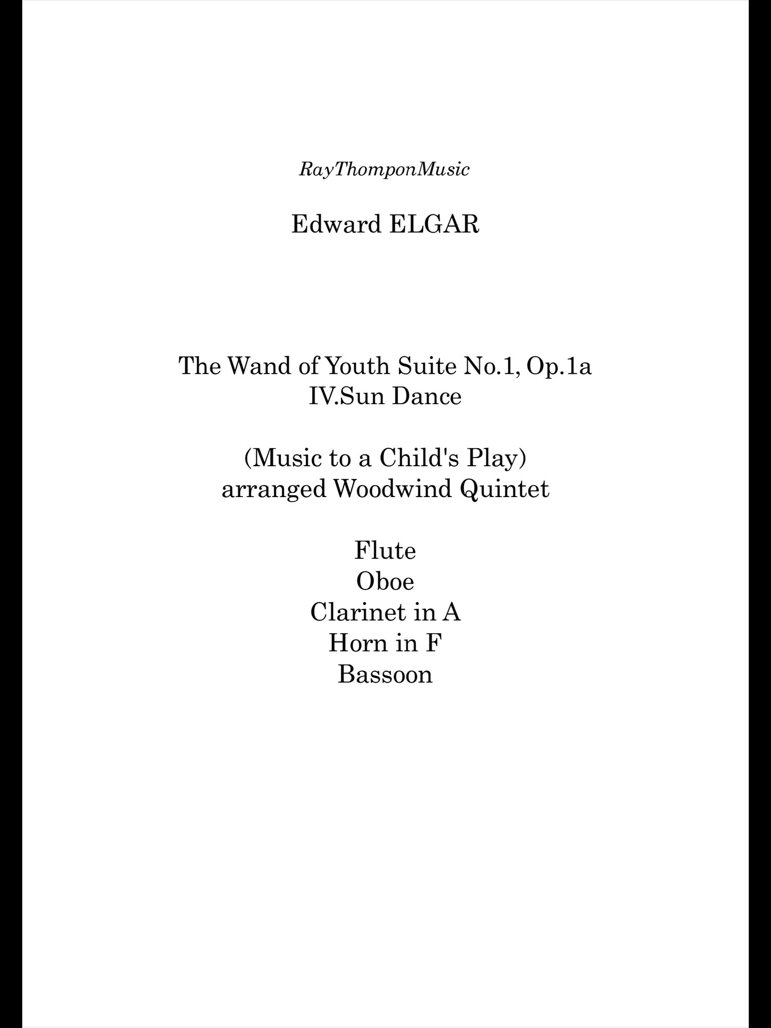 Elgar: Wand of Youth Suite No.1 Op.1a IV.Sun Dance - wind quintet