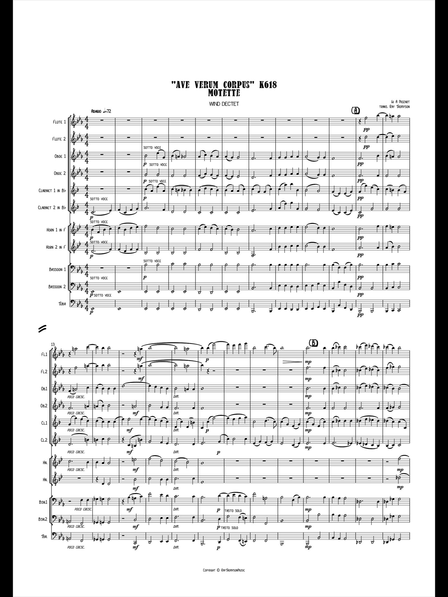 Mozart: Motet "Ave Verum Corpus" K618 - wind dectet