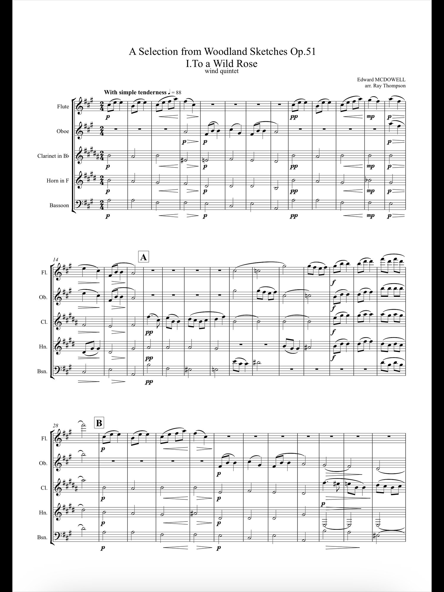 MacDowell: 5 Woodland Sketches Op.51 (Includes No.1 "To a Wild Rose") and 3, 4, 7 & 8 - wind quintet