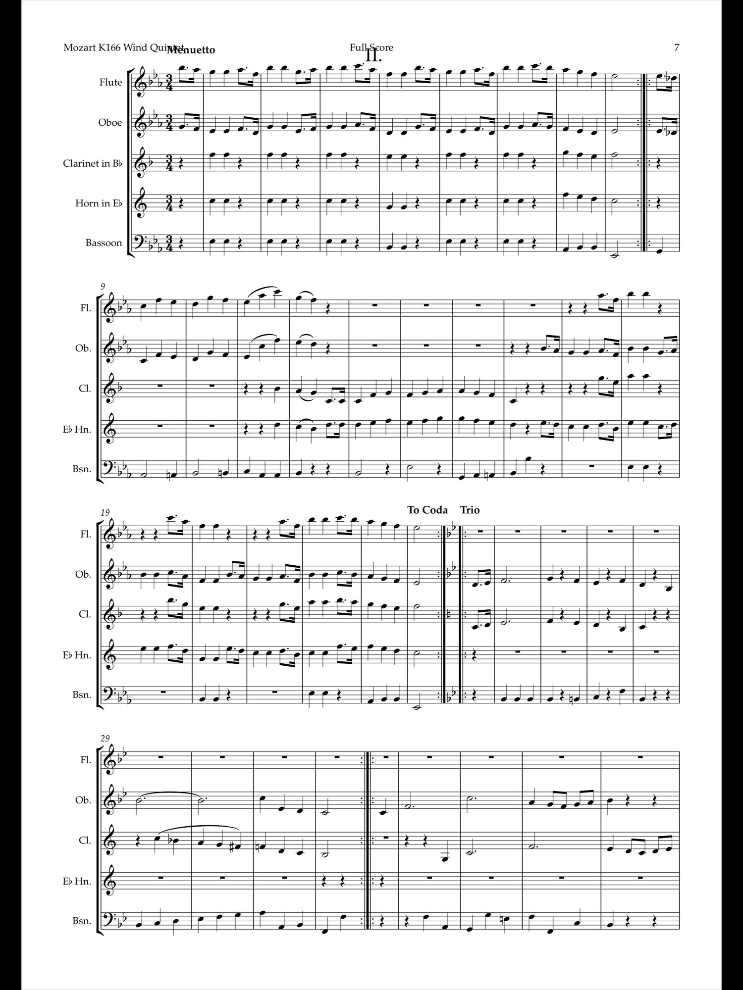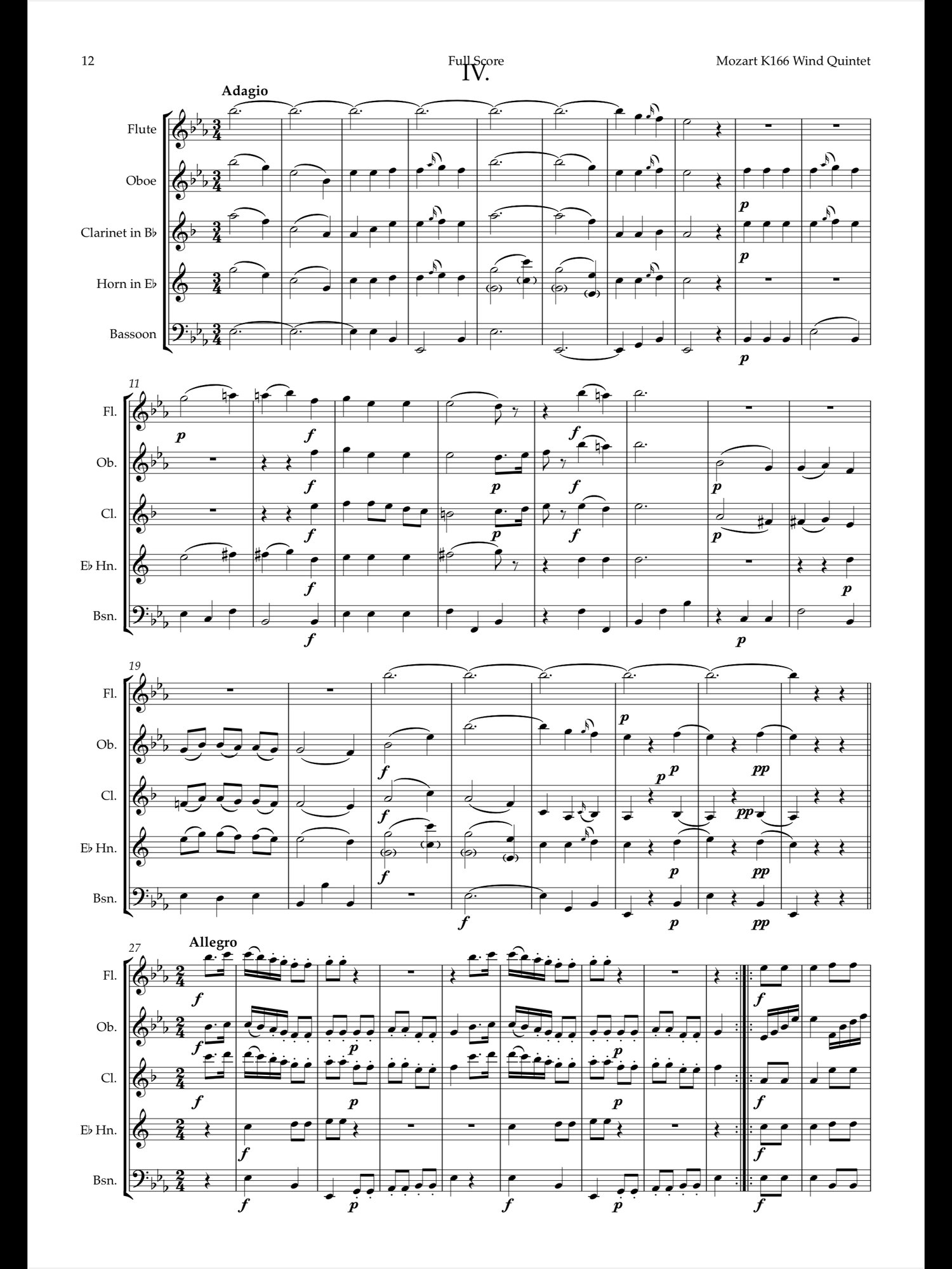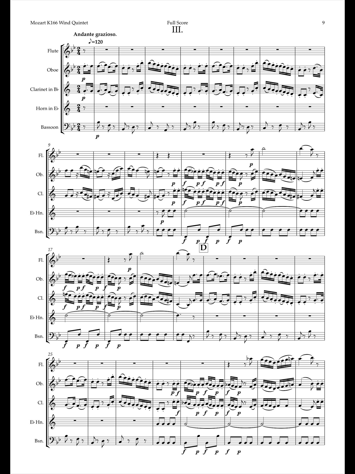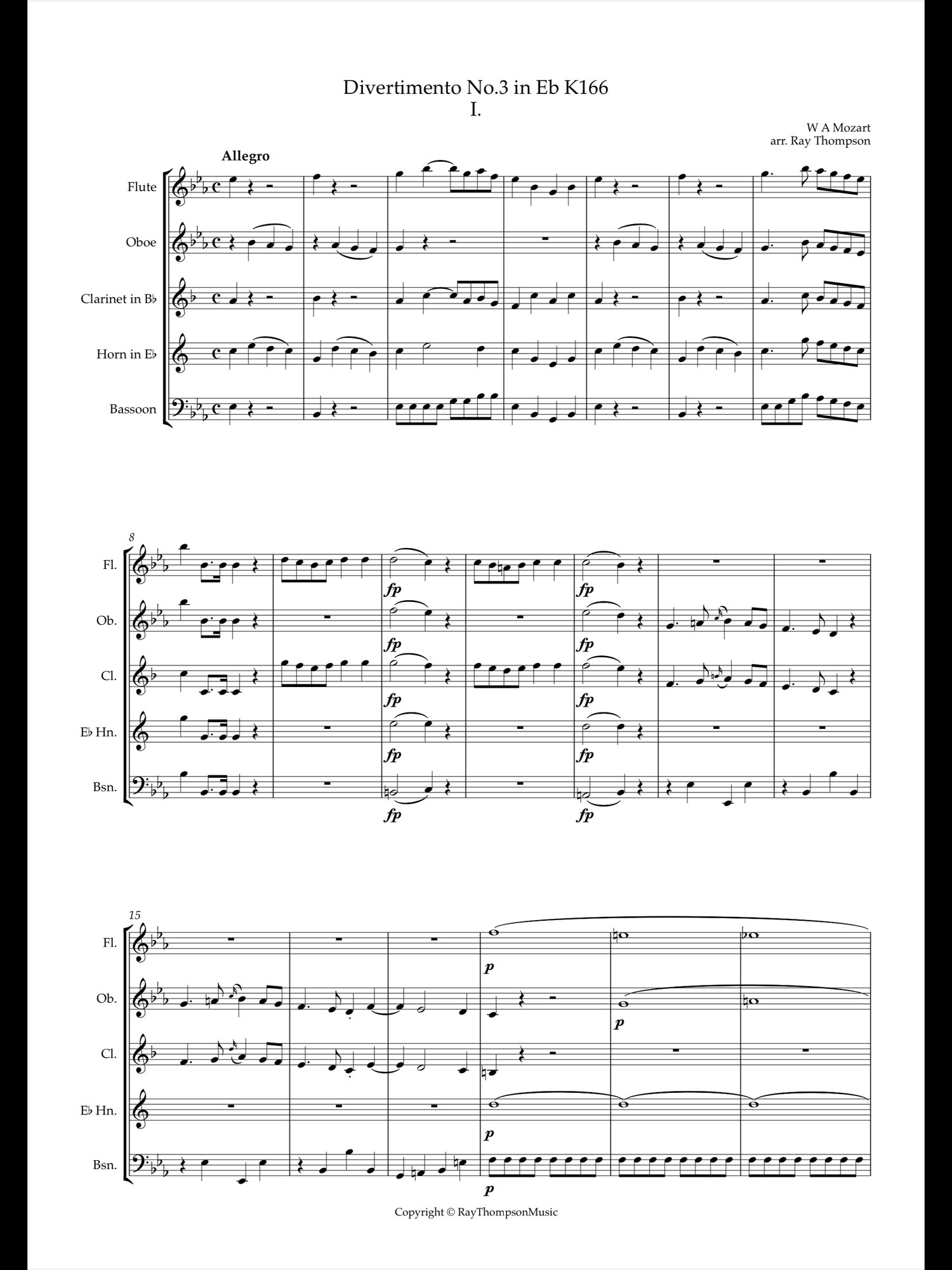 This is my arrangment of Divertimento No.3 in Eb K166 for standard wind quintet.
