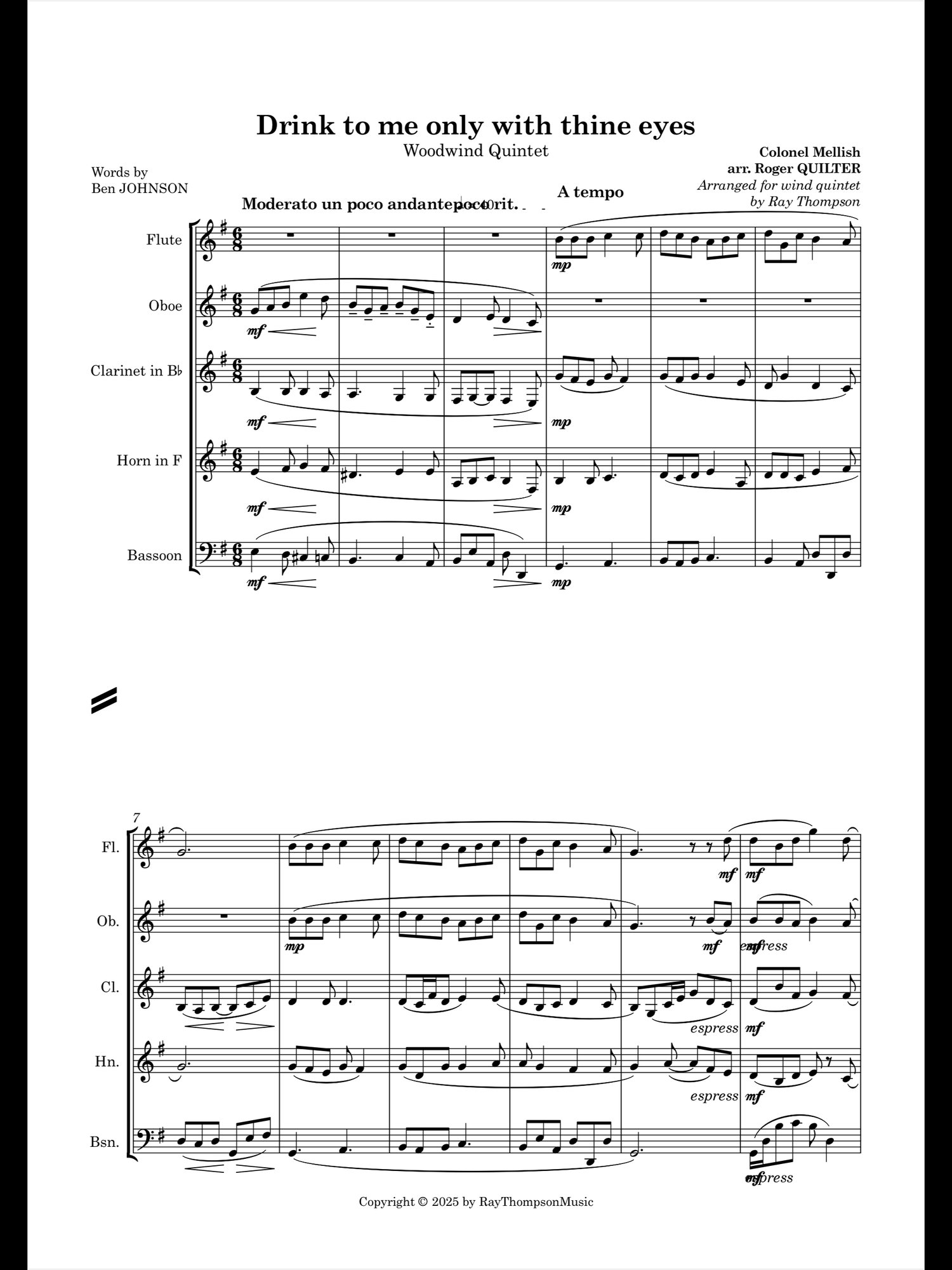 Quilter: Drink to me only with thine eyes - wind quintet
