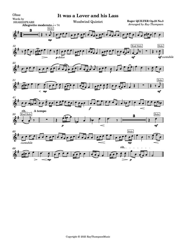 Quilter: It was a Lover and his Lass - wind quintet