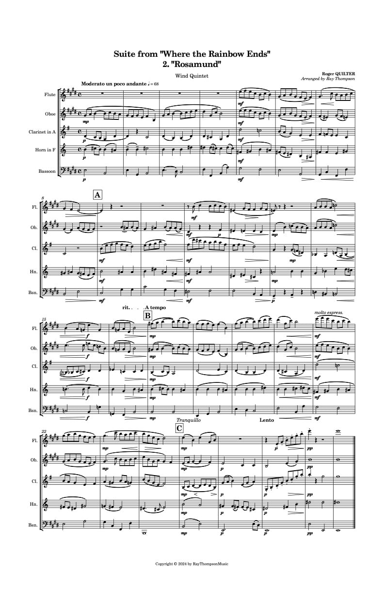 Quilter: Suite from "Where the Rainbow Ends" Mvt. 2 "Rosamund" - wind quintet