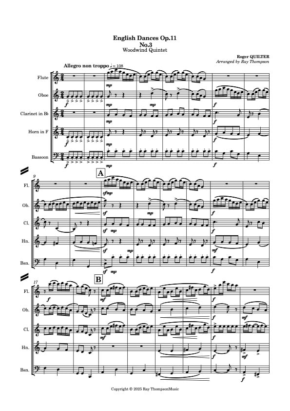 Quilter: Three English Dances Op.11 No.3 - wind quintet