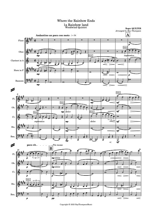 Quilter: Suite from Where the Rainbow Ends - The Incidental Music - wind quintet