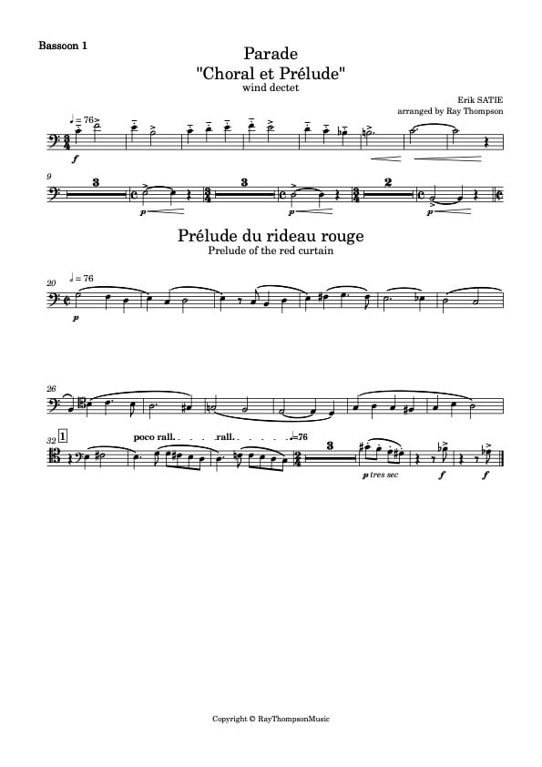 Other Parade scores (and other Satie arrangements not on this site) available on Sheet Music Plus.