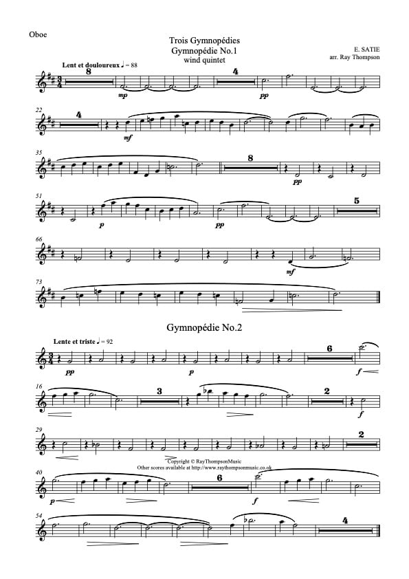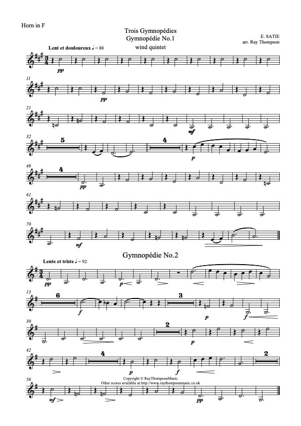 Satie: Trois Gymnopédies Nos.1, 2 & 3 - wind quintet